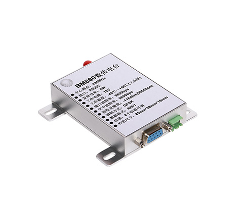 BM880高速率无线数传电台,是一种远距离无线数据传输产品,它体积小,金属外壳,屏蔽性能好,抗干扰性强,内部采用集成功放,TCXO等高可靠性器件,内置看门狗,产品的稳定性及可靠性极高。采用先进的GFSK调制方式,提高了频率资源的利用率和产品的抗干扰能力,半双功的通讯方式,能方便为用户提供双向的数据信号传输、检测和控制。收发时间小于18mS(9600bps通讯数率),适时性强。适合用于无线数据采集、工业控制、油田测控、水纹监测等重要领域。